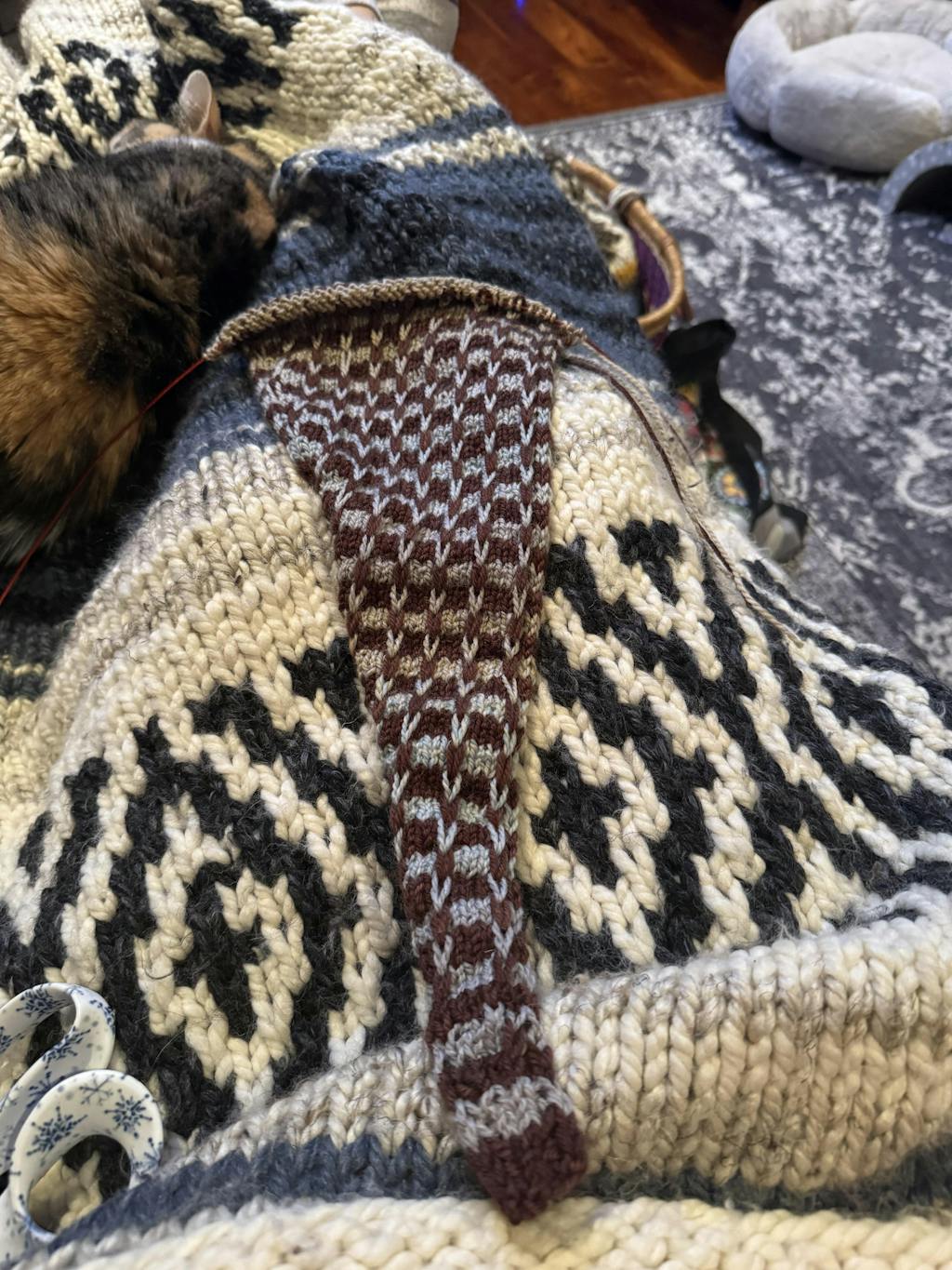 Rebekah used two skeins of Merino DK and on Zauberball Starke 6 DK.