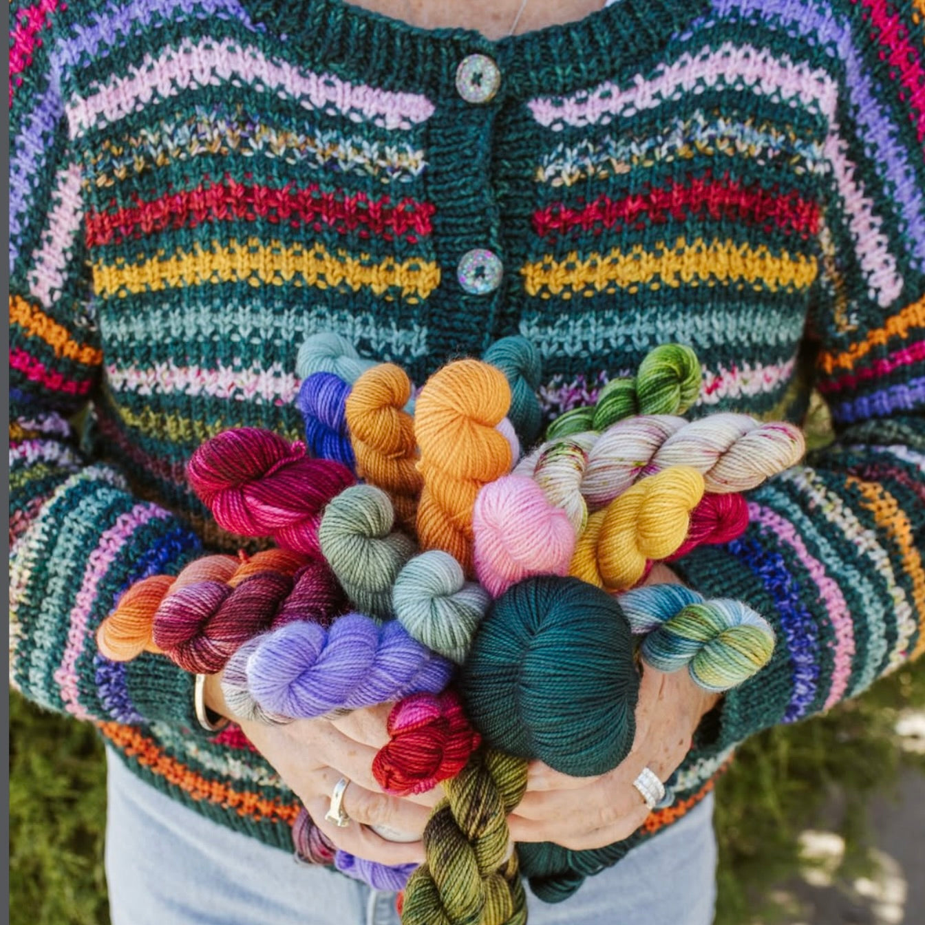 The colors are unbelievably gorgeous! I also love the knitting bag and candle. Such wonderful extras!