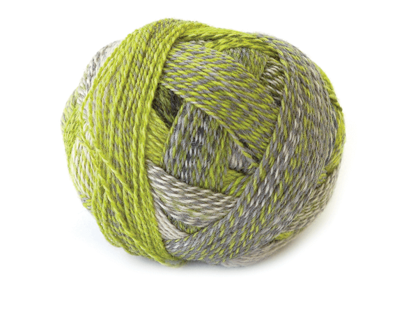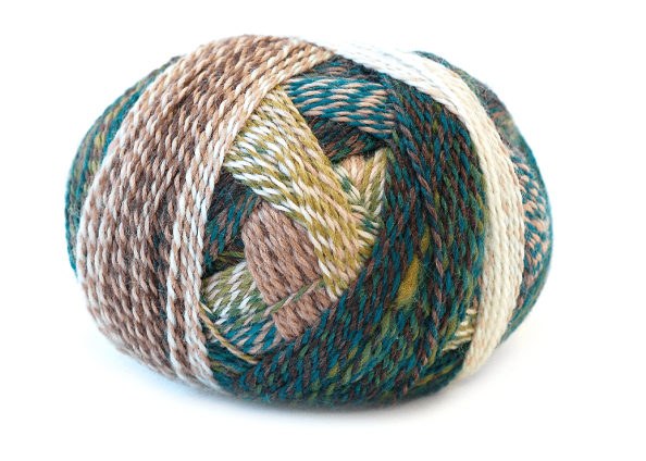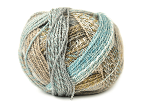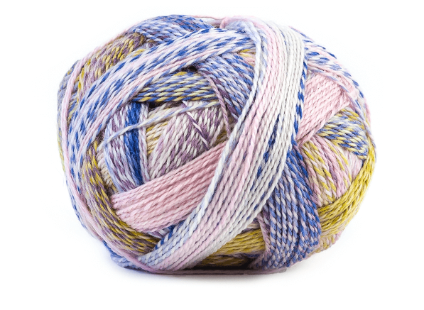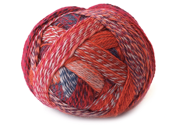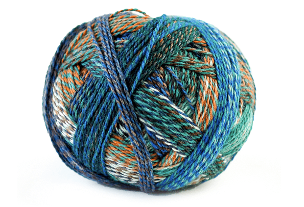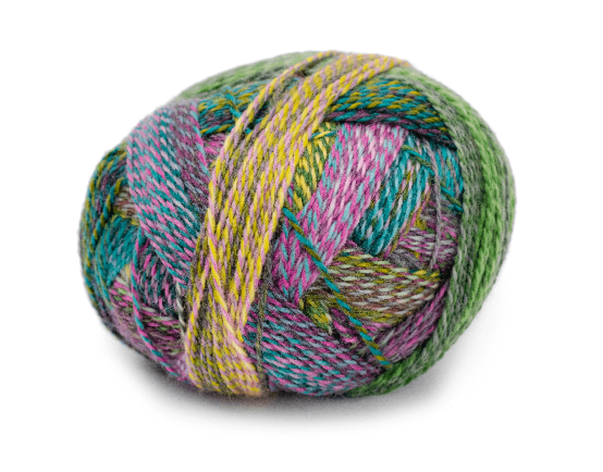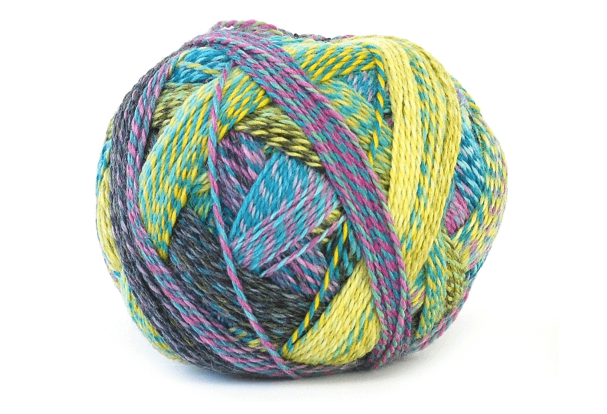 Zauberball Starke 6 has two stands of the main ply that has been dyed individually and then twisted together for a colorful combination. The end result is a self-striping multi-colored pattern.